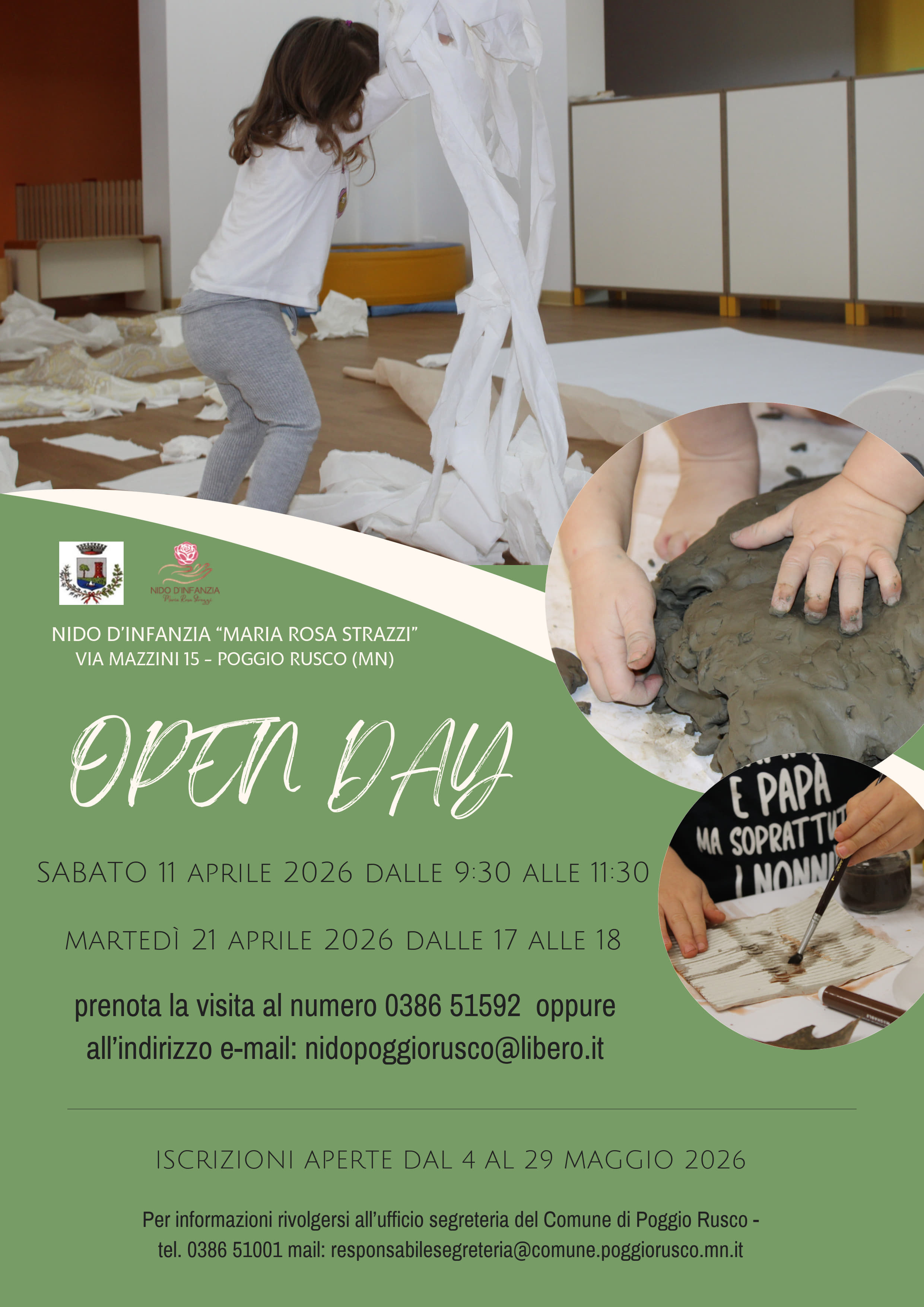 Si informa che da lunedì 4 a venerdì 29 maggio 2026 sarà possibile presentare istanza di iscrizione al Nido Comunale “Maria Rosa Strazzi” per l'a.e. 2026/2027 utilizzando il modulo allegato.
